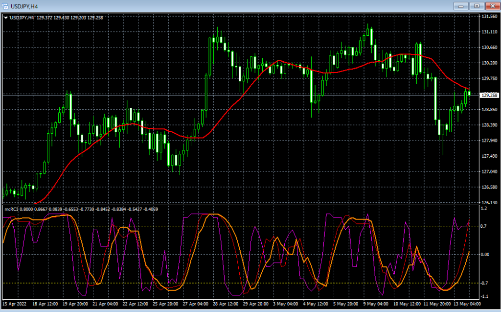 1つのインジケーターで複数本のRCIをカラフルに表示可能です。
